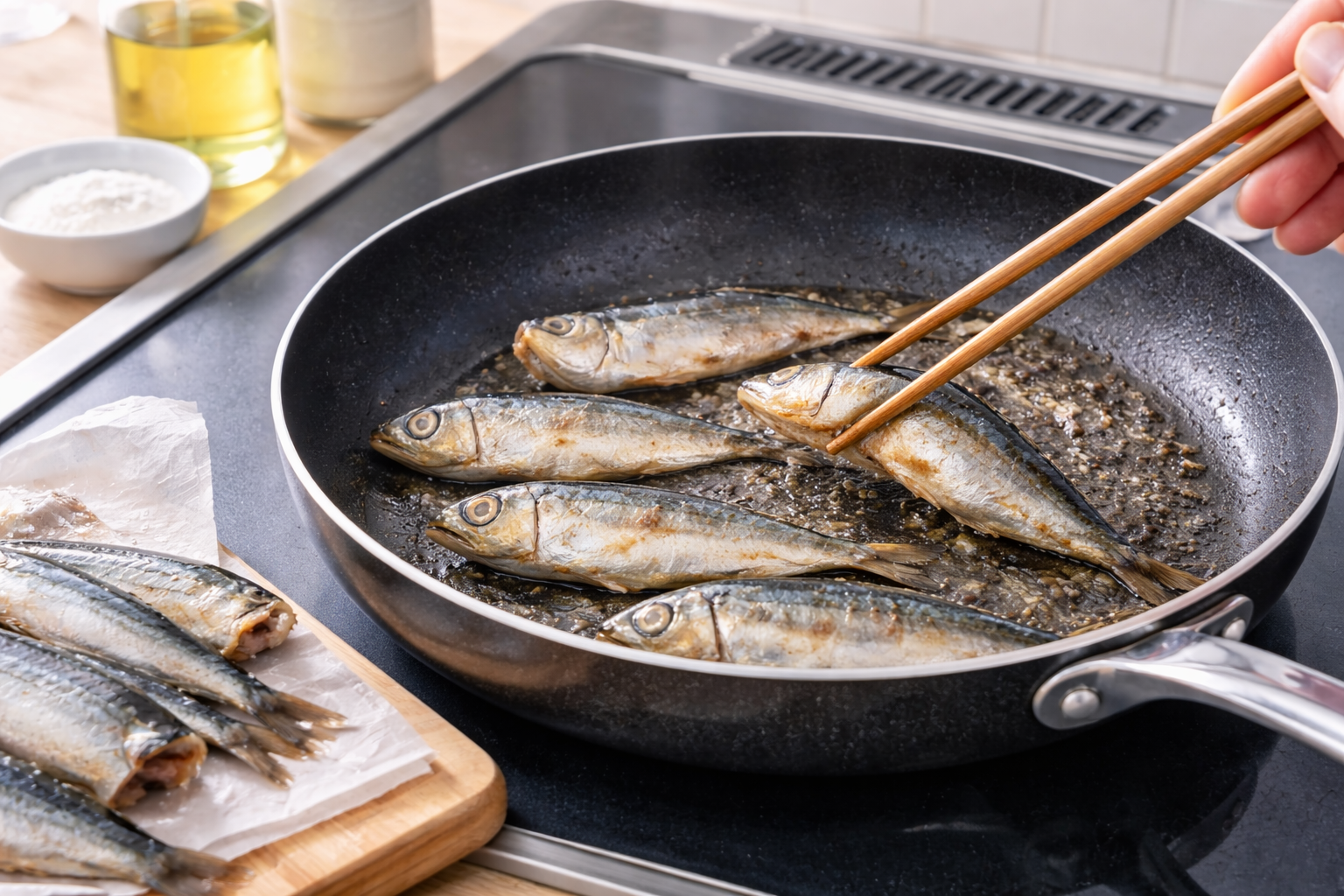 🐟いわしをフライパンでくっつかない焼き方|皮がはがれにくい家庭のコツ