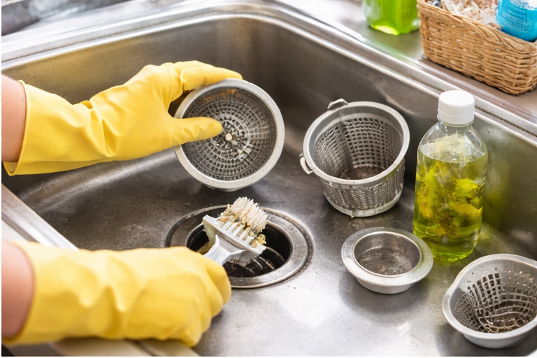 ・排水口のゴミ受けを洗う