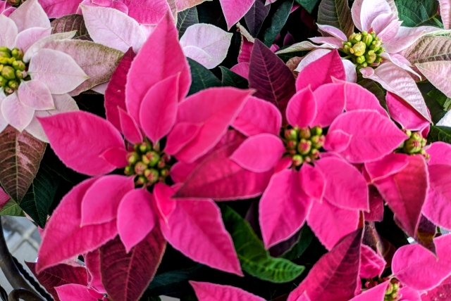 ポインセチアの葉が丸まったり、しわしわになったりするのは、寒さ・乾燥・水分管理・日光不足 といった環境要因が大きく影響しています。