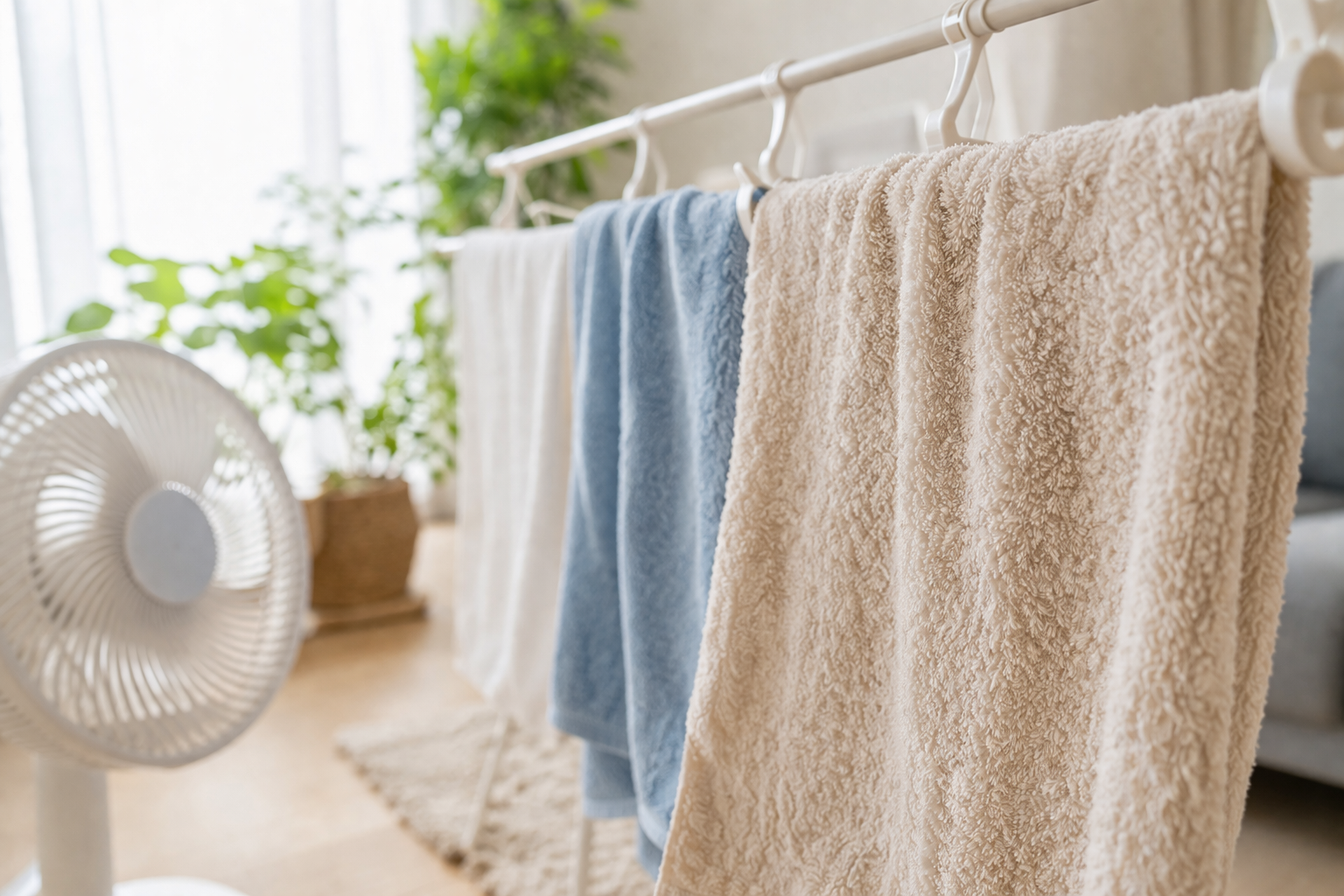 🧺 タオルの部屋干しが臭い原因と対策!生乾き臭を防ぐ完全ガイド