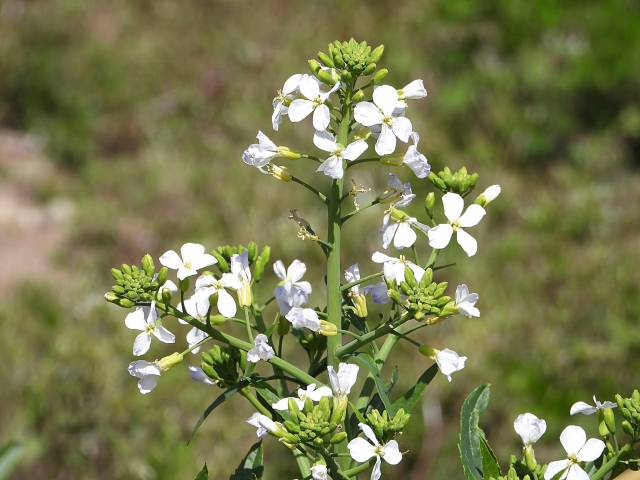 小さく白や薄紫の可愛らしい花は、春の4月~5月頃に見かけることがあります。大根はアブラナ科の植物で、菜の花の仲間でもあり、花は春を象徴する季語としても知られています。七草粥で使われる「スズシロ」も大根の一種です。