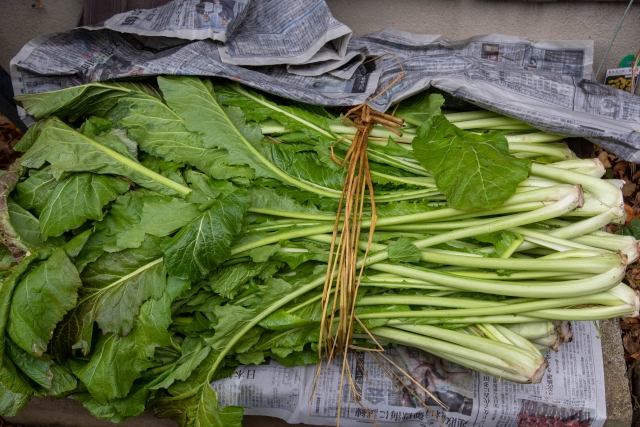- 高菜:葉の緑色が濃く、茎が太めでしっかりしているもの