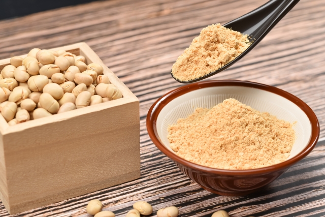 きなこは大豆が原料なので、植物性たんぱく質・食物繊維・鉄分・カルシウム・イソフラボンが豊富です。