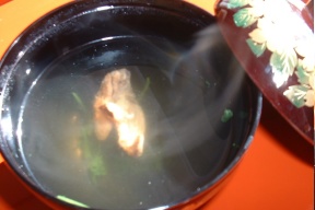 鰻屋でよく見かけるお吸い物、「肝吸い」です。通常、うな重の付け合わせとして提供されます。