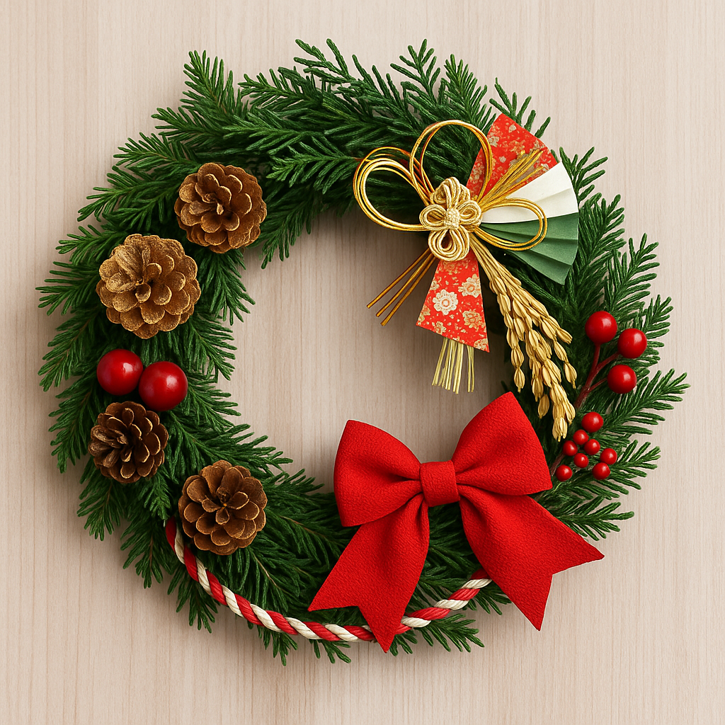 実は、少し手を加えるだけで クリスマスリースをお正月飾りにリメイク できるんです。新しい正月飾りを買わずに手持ちのリースを活用すれば、節約・エコ・オリジナリティの三拍子がそろったお正月準備が叶います。