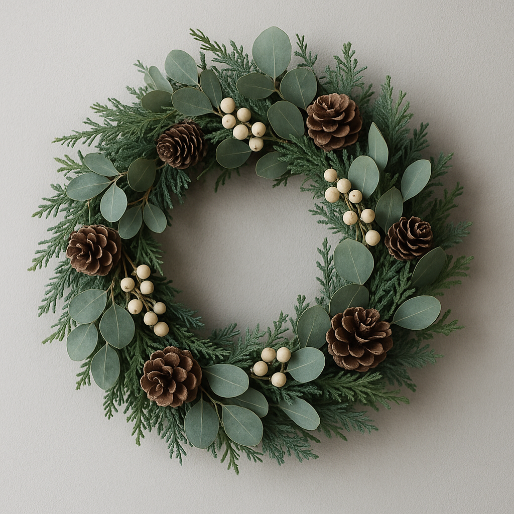 しかし、近年は「北欧風」「ドライフラワー」「グリーンインテリア」などのトレンドと合わせて、クリスマスリースを通年インテリアとして楽しむスタイルが注目されています。