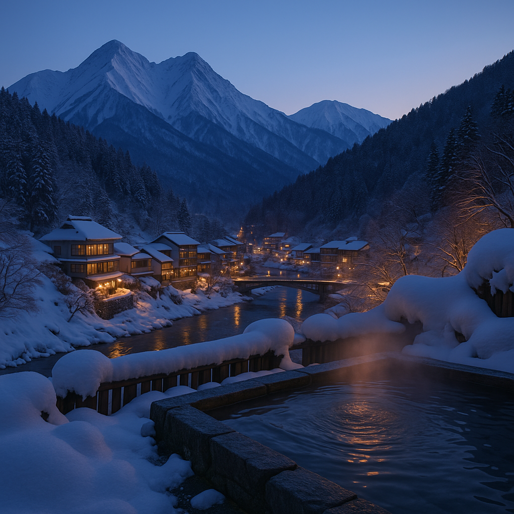 温泉街の湯けむりや、古民家の灯りが雪に映える光景は、まるで絵本の1ページのよう。