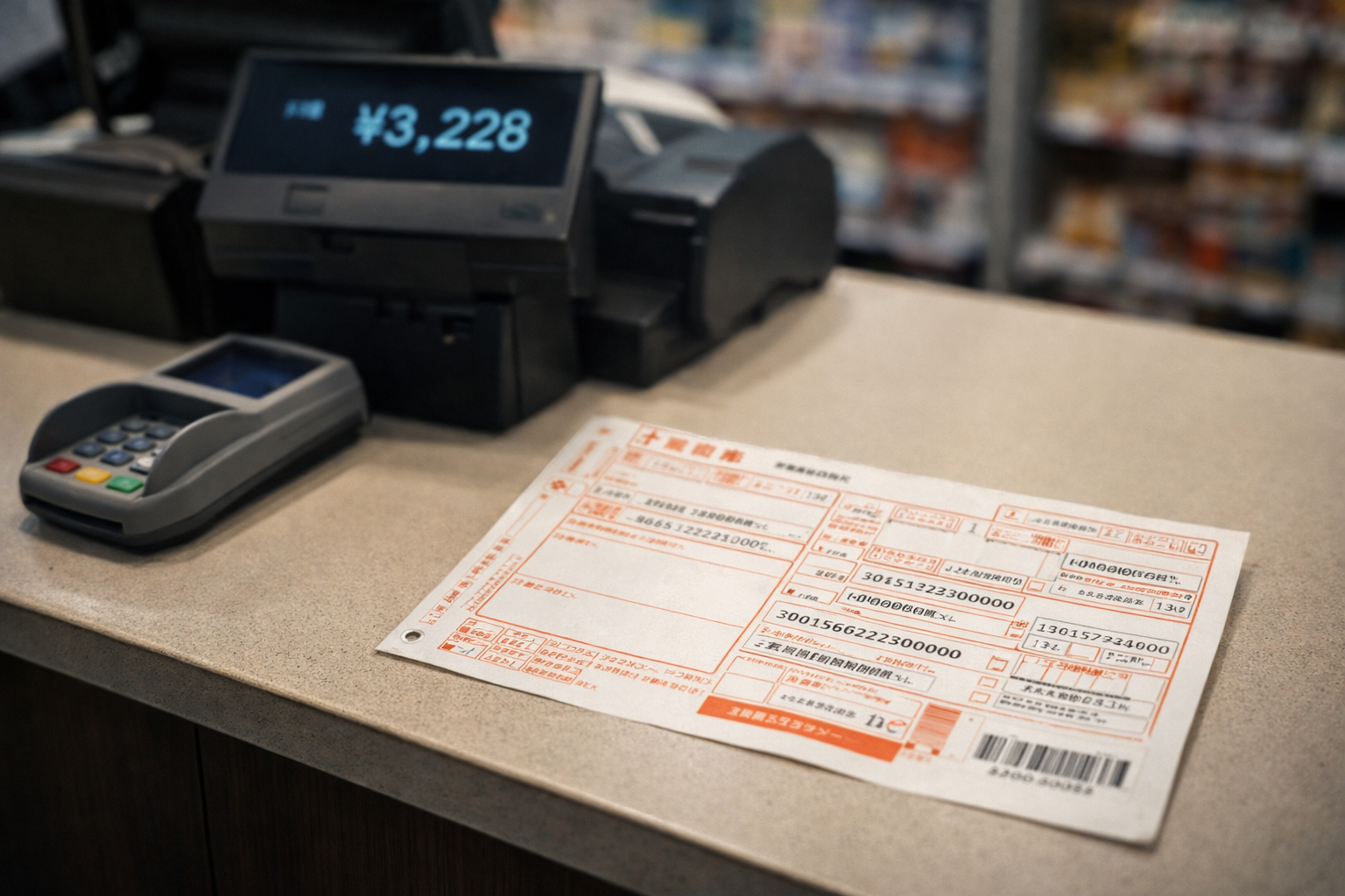コンビニでの公共料金支払いは、払込用紙に記載されたバーコードや番号を使って処理される仕組みです。